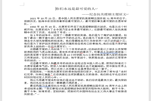 10月31日,计算机科学与技术公司小水滴公益联盟举办纪念抗美援朝征文活动。此次活动由来利国际旗舰厅团委主办,小水滴公益联盟承办,全校部分同学参加。