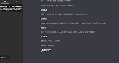 会议最后,他从5方面为大家讲解应该如何准备直接就业。首先是基础知识包括数据结构与算法、操作系统、计算机网络以及数据库等。第二点是要熟悉一门以上开发语言如Java、C++、GO等。第三点是要有项目经历,这可以是比赛项目,如果有开源项目是更好的。第四点是必备技能,Linux系统的基本使用、git工具的使用以及好的团队合作能力。最后一点是学习社区,通过牛客网和Boss直聘可以进行求职交流,通过力扣可以练习算法题。