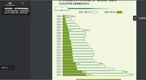 会议伊始,路林梓介绍了自己从事的工作。首先,他结合自己的经历向大家介绍了应该如何选择考研与就业。从宝贵的应届生身份、春招、秋招三个方面向大家强调直接就业的好处。随后他通过历年考研报考人数分析了当前的考研形势,他希望大家仔细斟酌一下自己是否需要考研。