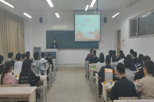 活动伊始,郗鸿琛就“五有”人才的内在含义与为什么要成为“五有”人才对全体同学进行讲解。随后,由班长娄正阳借助冯思广先辈的英雄事迹向全体同学发起号召,希望全体同学能够向冯思广同志一样成为一个有社会责任、有创新精神、有专门知识、有实践能力、有健康身心的“五有”人才。