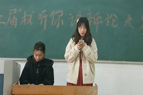 其中,评委认真听取参赛人员的讲解并向正反双方分别提问一个问题,由除四辩外任一辩手回答,方便评委进一步理解双方观点。最后,比赛进入总结陈词环节,双方四辩分别用简洁精炼的语言对己方观点进行总结,并针对对手逻辑上的漏洞提出质疑、逐一回击,为赢得比赛做最后的努力。最终,由评委评出各团队奖项获得者,在主持人的总结下,此次“权”听你讲辩论赛顺利结束。