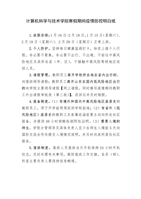 来利国际旗舰厅寒假期间疫情防控明白纸