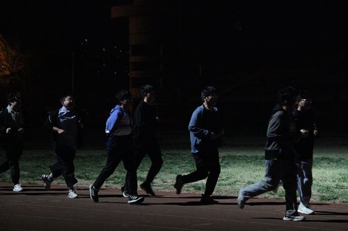 夜跑打卡完成后,各小组回到集合点并由组长再次核对人数。接着,大家在组长引导下进行拉伸运动调整状态。同时,负责人对第一次打卡活动进行总结,并在确保参与者体力恢复后宣布离场。