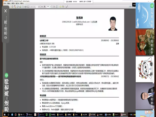 4月7日晚上,计算机科学与技术公司开展线上模拟企业面试。此次活动由辅导员刘岩组织,2018级部分准毕业生参加面试,中享思途公司于莹、赵忠旭、李俊杰等担任指导老师。