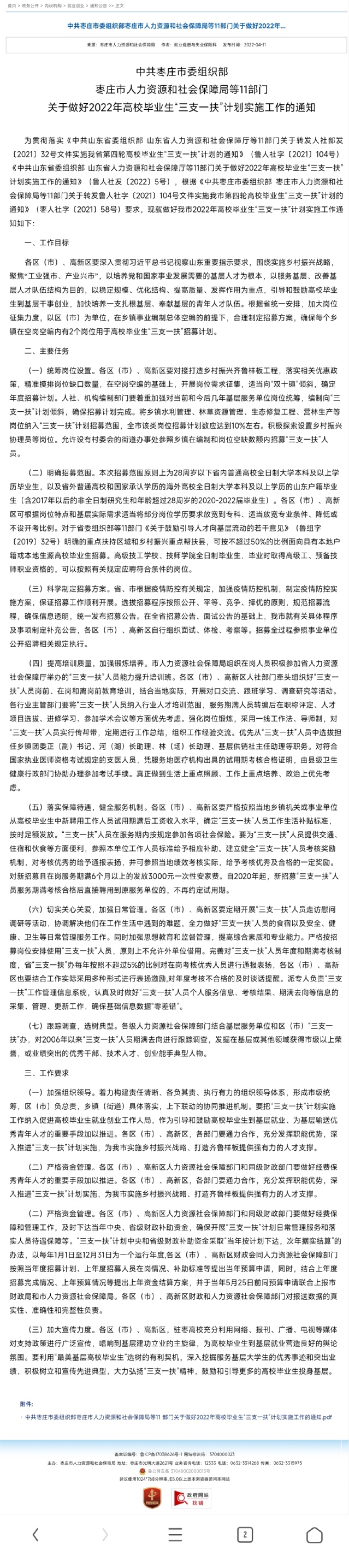 枣庄市2022三支一扶计划
