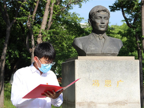 活动伊始,刘文科向参加活动的同学讲述了冯思广烈士的感人事迹,以此激励同学们争做新时代冯思广精神的传承者和践行者,并指出广大团员青年迎以冯思广烈士为榜样,学习与弘扬冯思广矢志报国、忠于人民的爱国情怀,追求卓越、奋力拼搏的进取精神。随后,到场员工在校园内冯思广烈士的雕像前整齐站立,聆听冯思广烈士的感人事迹,学习五四精神重要内涵。