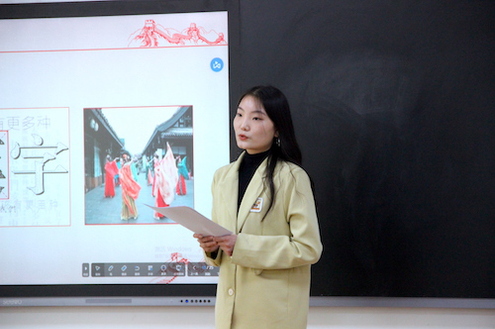 最后,孔佳硕将文化自觉、文化自信、文化自强三者有机联系起来,呼吁同学们“弘扬正气、发愤图强,提升内在修养和文化自信”,以此“让中华文化绵延不绝,历久弥新”。