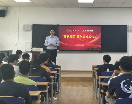 5月20日上午,来利国际旗舰厅首届“青软集团”奖学金颁奖仪式在九教211隆重举行,副经理王志强、经理助理孙福振、辅导员刘明卿、辅导员吴盼盼出席了颁奖仪式。