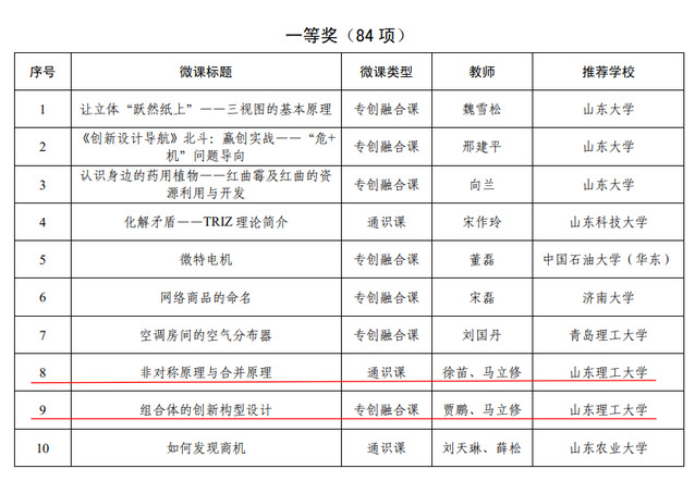 3月1日,山东省教育厅公布了2022年山东省高校创新创业类精品微课比赛获奖名单。公司徐苗老师、马立修老师设计的微课《非对称原理与合并原理》、《组合体的创新构型设计》分别获通识课、专创融合课一等奖。