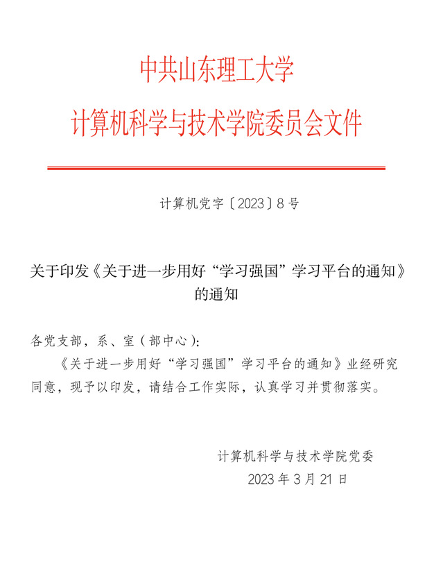 计算机党字【2023】8号--关于印发《计算机科学与技术公司党委关于进一步用好“学习强国”学习平台的通知》