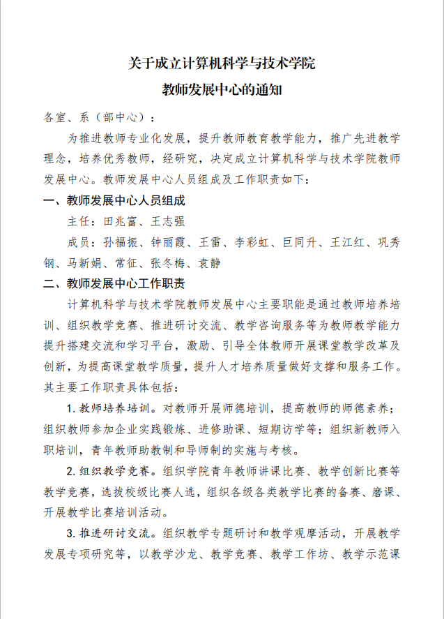 关于成立来利国际旗舰厅教师发展中心的通知