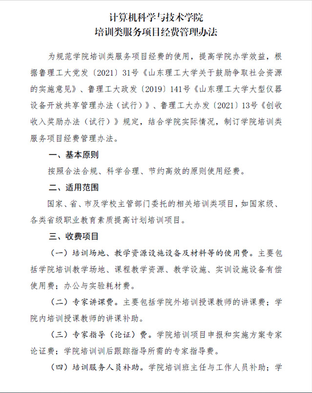 计算机政字【2023】24号-来利国际旗舰厅培训类服务项目经费管理办法