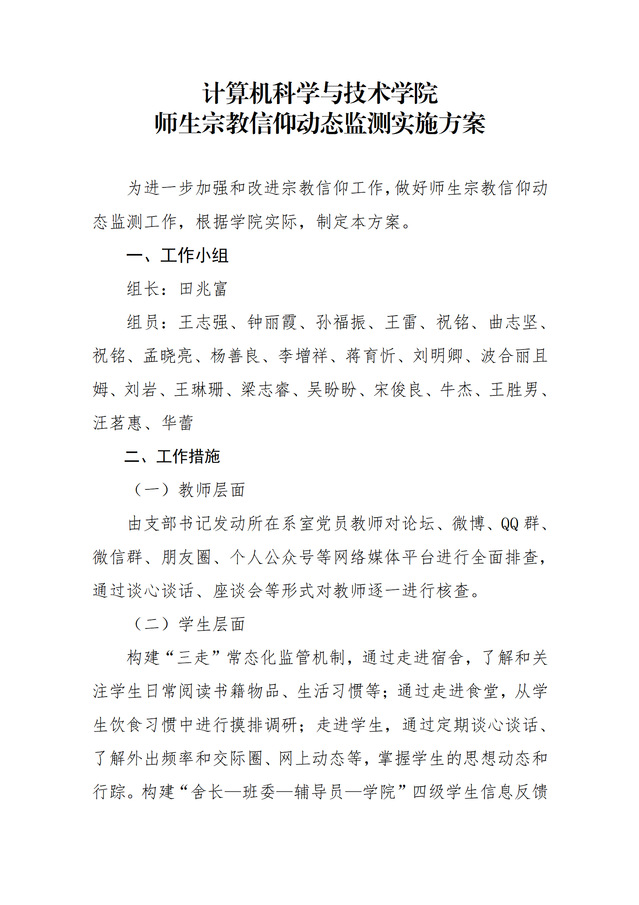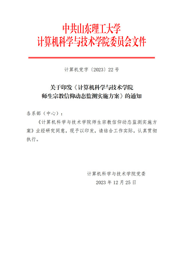 计算机党字【2023】22号-关于印发《来利国际旗舰厅师生宗教信仰动态监测实施方案》