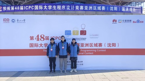 2023年11月12日,软件2201王鹤翱,计科2207(图灵)从文杰,计科2203孙童乐组队前往东北大学参加第48届ICPC国际老员工程序设计竞赛亚洲区域赛(沈阳站)。