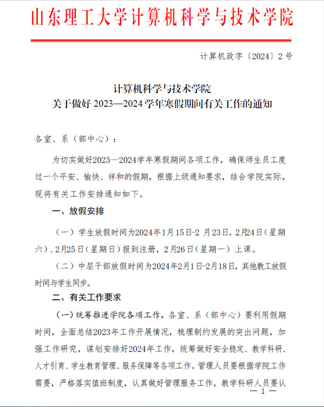 来利国际旗舰厅关于做好2023—2024学年寒假期间有关工作的通知