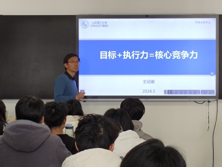 2024年3月8日下午三点,2022级图灵班在9#206教室举办了学情分析会。此次会议由班主任王绍卿、辅导员刘岩共同主持。首先由班主任王绍卿对上一学期的成绩进行了全面而系统的分析,而后谈及上学期结束的CET4成绩和未来的CET6备考,鼓励同学们好好准备CET6,争取高分。与此同时,班主任王绍卿提出“目标+执行力=核心竞争力”,并分别从创新能力、动手能力、英语水平等方面阐明了如何提高核心竞争力,为同学们今后的努力指明了方向。最后,班主任王绍卿强调到要有一颗感恩的心,要为了心中的美好,不妥协,一直到老。