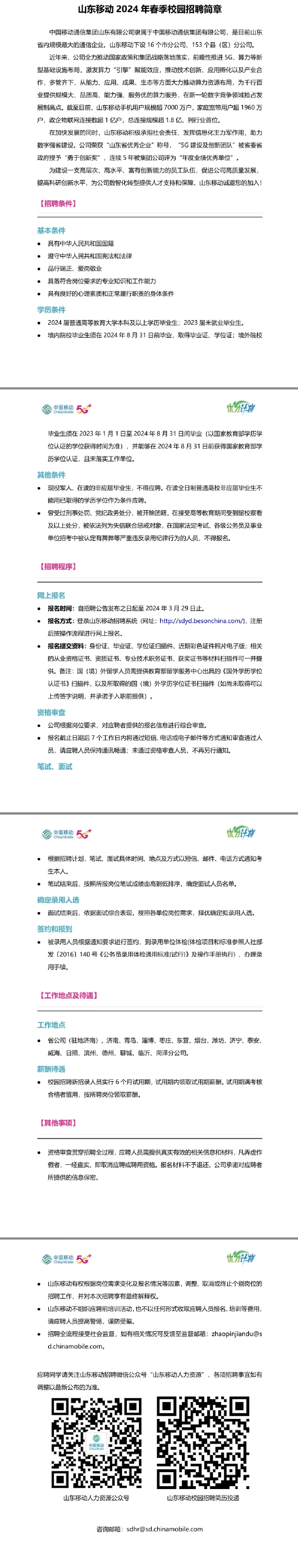 山东移动2024年春季招聘
