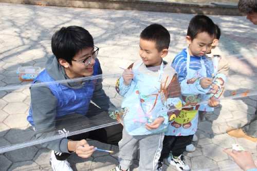 活动伊始,志愿者们满怀热情,自发地组成了三个小组,他们有条不紊地协助老师向每一位到场的小朋友分发画笔、颜料和调色盘。