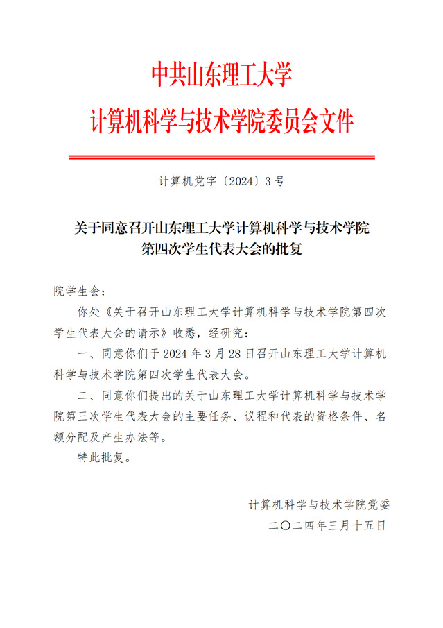 计算机党字【2024】3号-关于同意召开公司第四次员工代表大会的批复