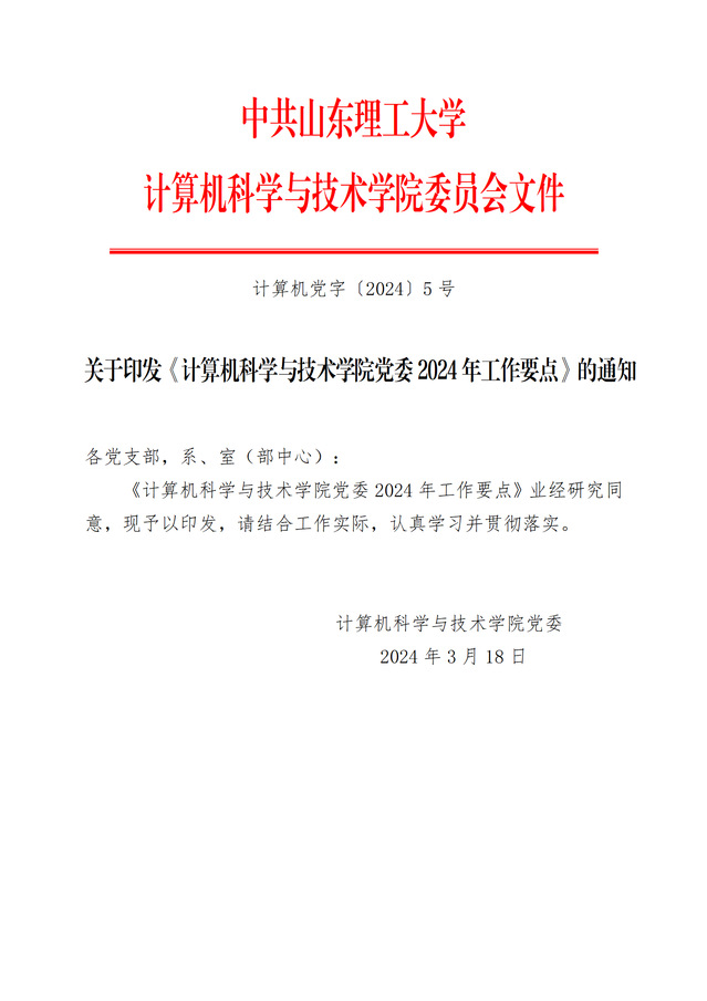 计算机科学与技术公司党委2024年工作要点