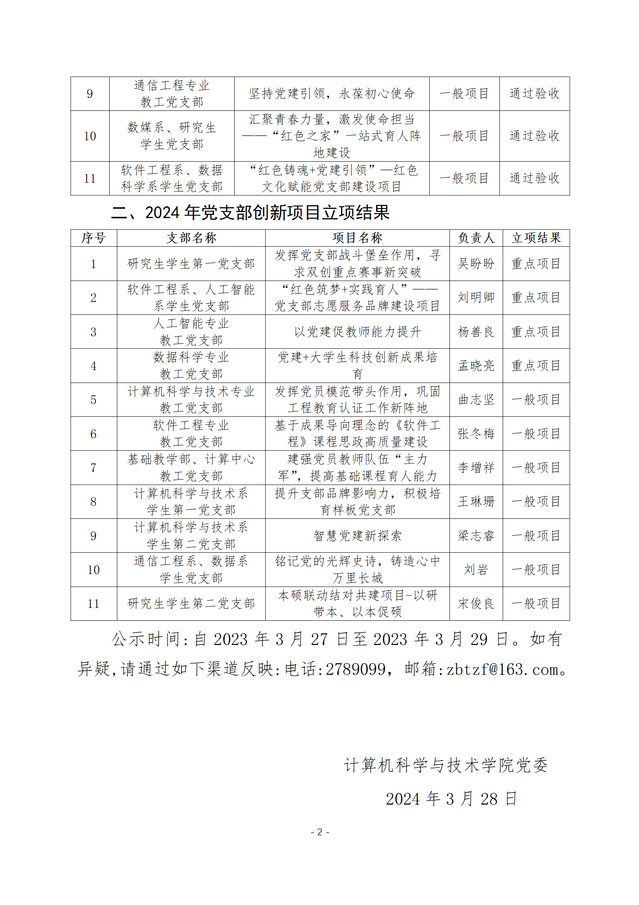 关于公布党支部创新项目2023年度结项、2024年立项结果的通知