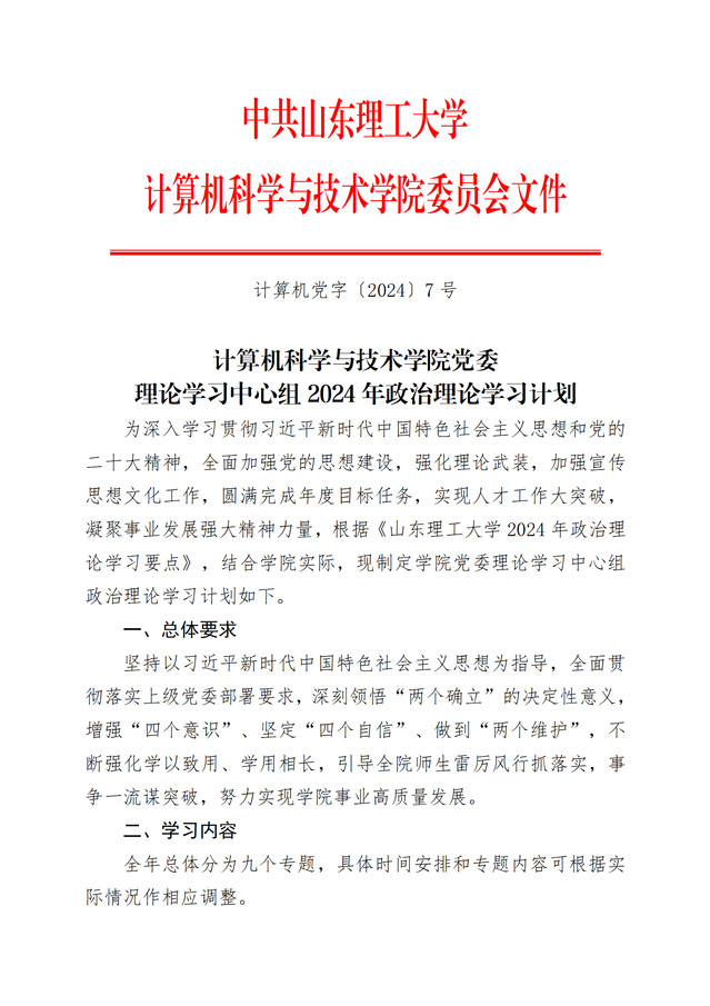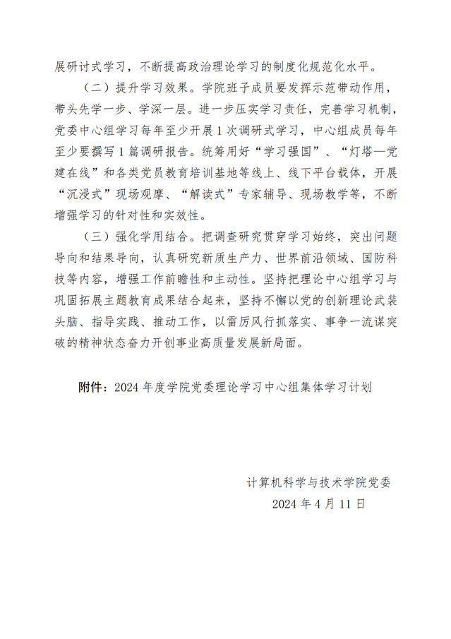 计算机科学与技术公司党委2024年理论学习中心组政治理论学习要点