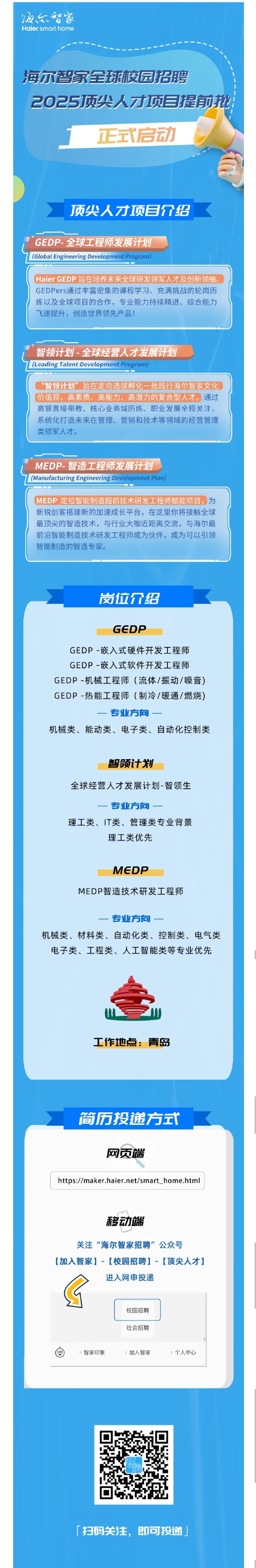 海尔智家全球校园招聘2025顶尖人才项目提前批