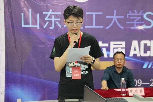员工代表、20级ACM集训队成员张子昊发言。张子昊表示ACM程序设计竞赛不仅是展示创新才华的舞台,更是锻炼和提升分析解决问题能力的重要平台。他希望全体参赛选手能够珍惜竞赛机会,全身心地投入到比赛中去,感受编程的魅力,为练就过硬专业技能打下坚实基础。