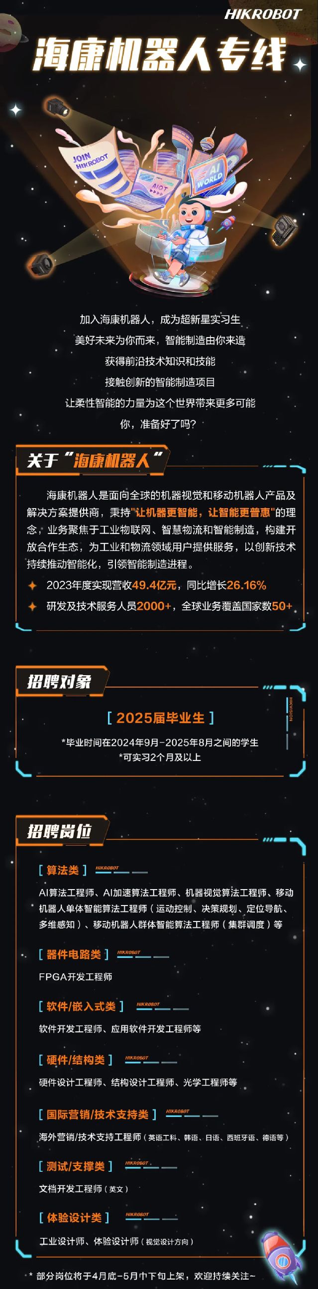 加入海康机器人2025届「超新星实习生」,解锁闪闪发光实习之旅!