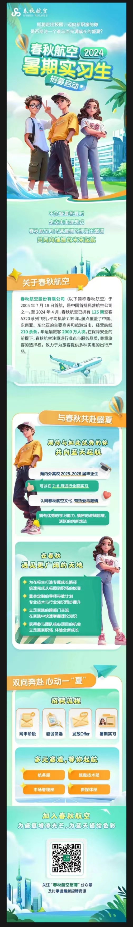 春秋航空2024暑期实习生招聘