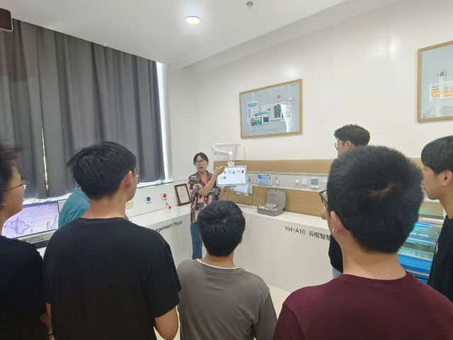 在亚华电子,同学们见到了许多前沿的产品,包括智慧病房的护理通讯信息系统、探视与监护系统,智慧门诊的云枢门诊服务交互系统、信息发布系统、自助服务系统,以及智慧养老的智慧养老管理平台、云睦助手APP等。各种产品相互相互配合,使数据信息化、管理智能化、沟通便捷化,为医疗信息化建设、智慧医养事业提供了有力支撑。
