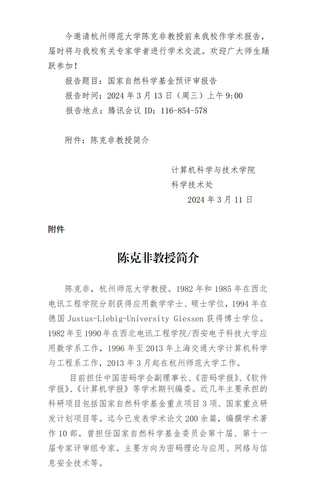 学术报告会通知(​来利国际旗舰厅)-陈克非