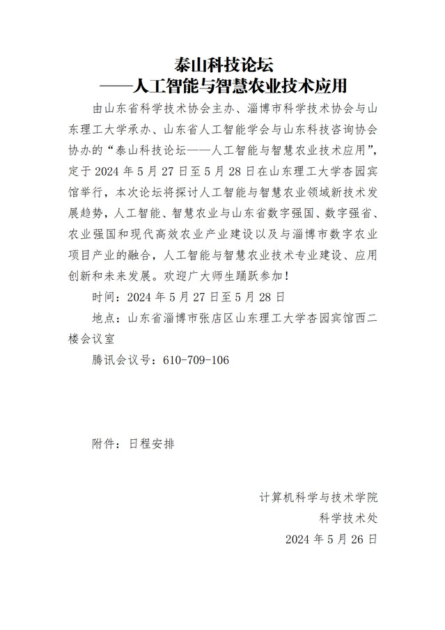 泰山科技论坛 ——人工智能与智慧农业技术应用