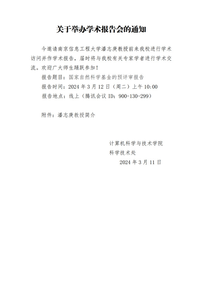 学术报告会通知(​来利国际旗舰厅)-潘志庚