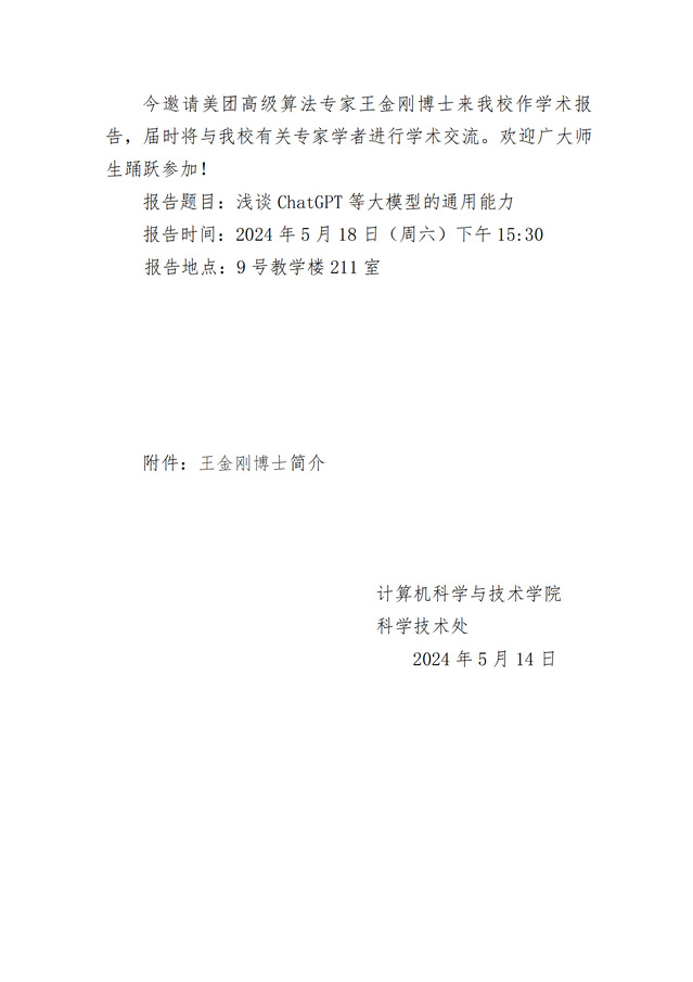 学术报告会通知(​来利国际旗舰厅)-王金刚