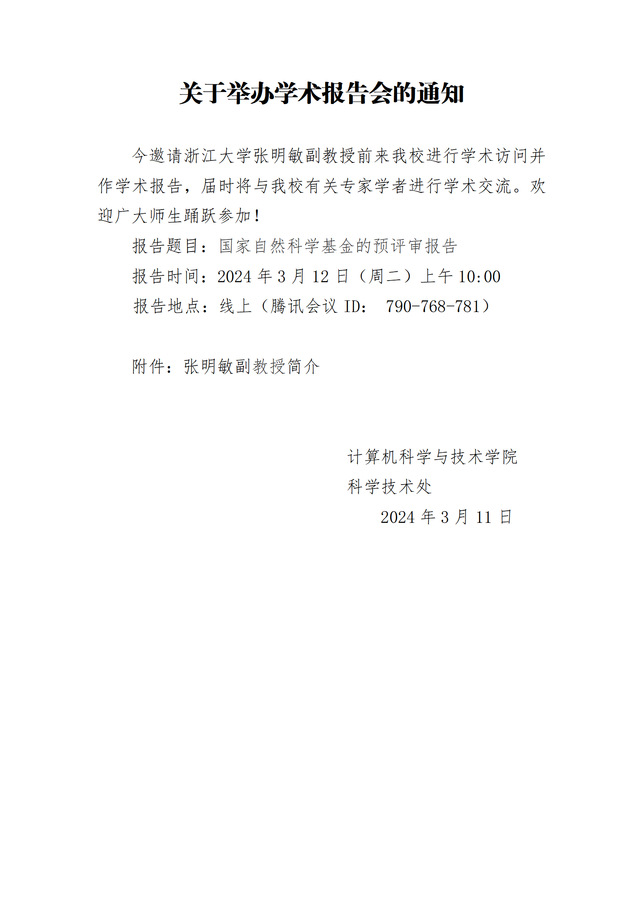 学术报告会通知(​来利国际旗舰厅)-张明敏