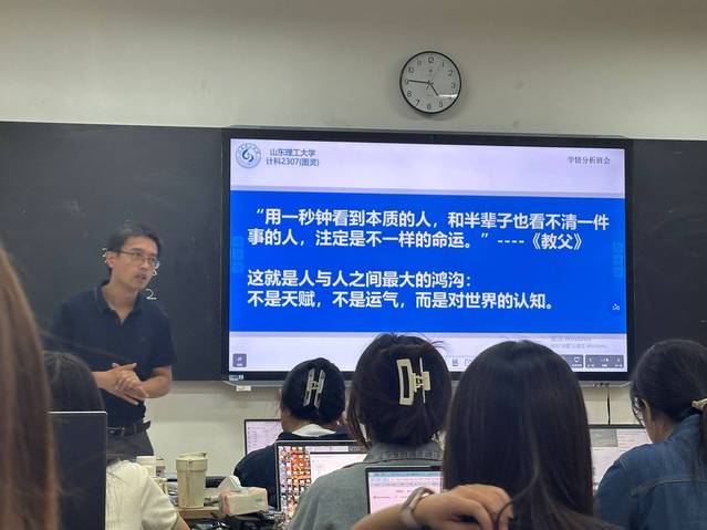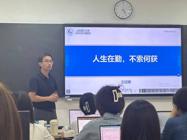 首先,王绍卿对23级图灵班的智育成绩进行了分析,表示,希望同学们能继续努力学习,丰富自己的专业知识,并鼓励同学们积极参加竞赛。再次强调了英语的重要性,希望23级图灵班的同学们能以优异的成绩通过英语四六级,为自己之后的学业生活铺路。