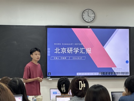 2022级图灵班的学长学姐们暑假期间去北京进行了研学活动,收获颇丰,2023级图灵班邀请2022级图灵班王宏祥为做研学报告。报告会于2024年8月29日星期四在9#309顺利召开。