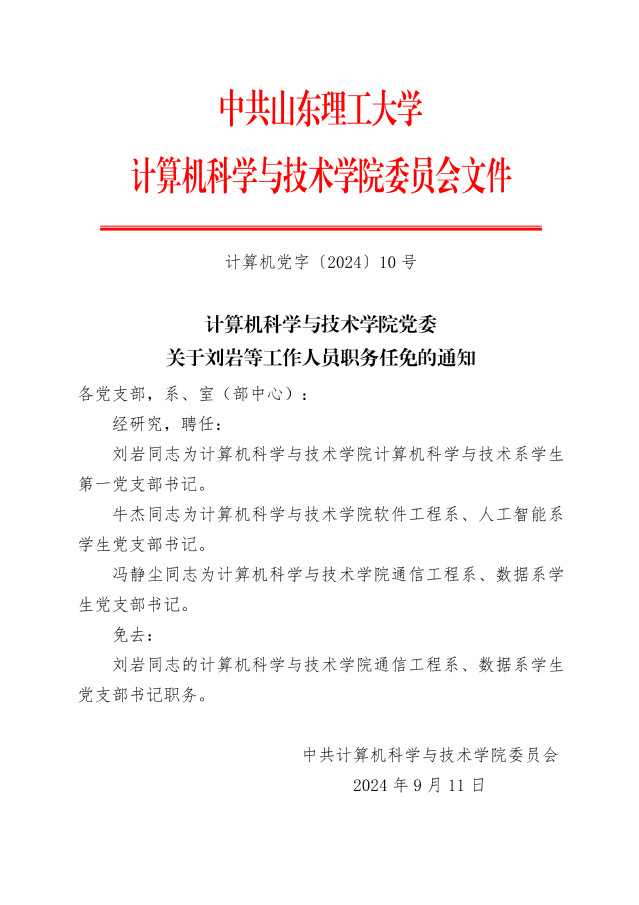 计算机党字【2024】10号-关于刘岩等工作人员职务任免的通知