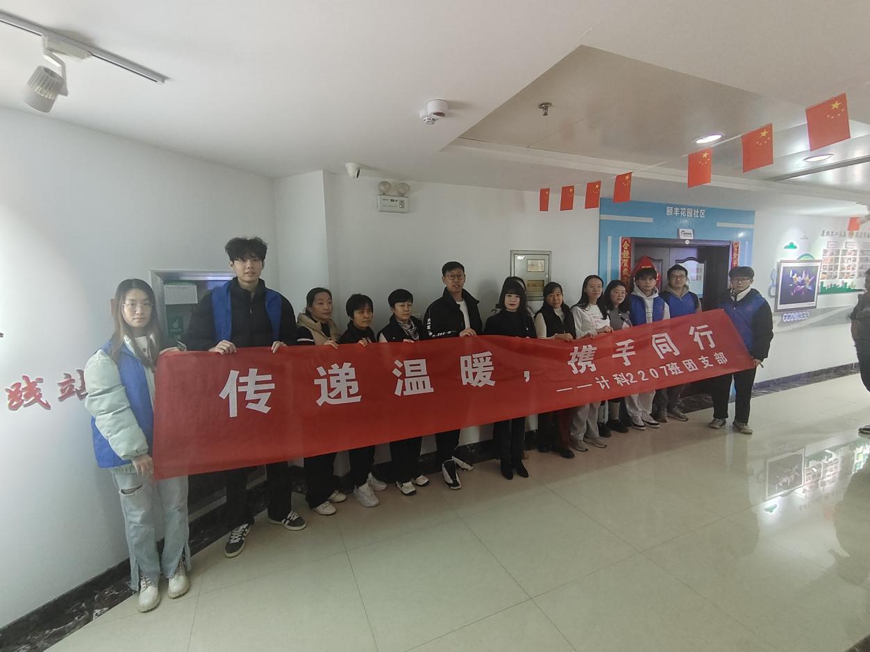 2024年11月26日上午,计科2207班团支部志愿团队前往颐丰花园社区开展了全民数字素养与技能提升系列活动之“传递温暖,携手同行”主题活动。本次活动由梁志睿老师带队,计科2207班团支部部分同学参加。
