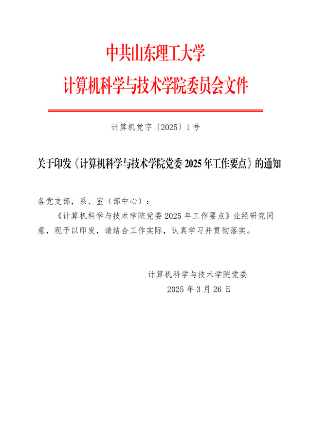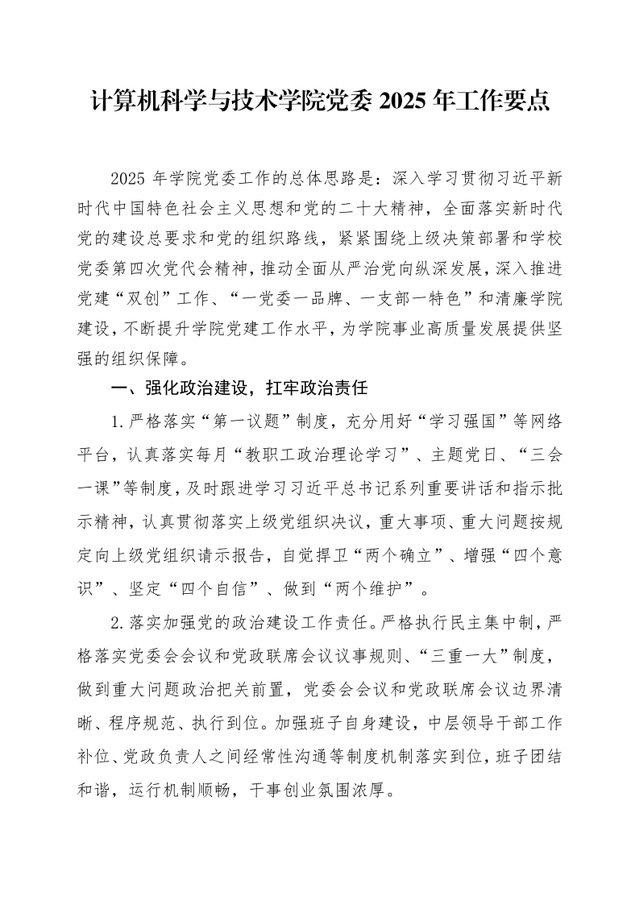 计算机党字【2025】1号-关于印发《计算机科学与技术公司党委2025年工作要点》的通知