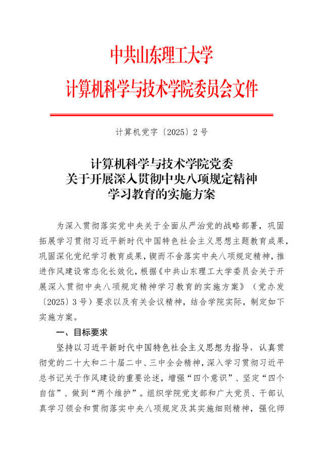 计算机党字【2025】2号-计算机科学与技术公司党委关于开展深入贯彻中央八项规定精神学习教育的实施方案