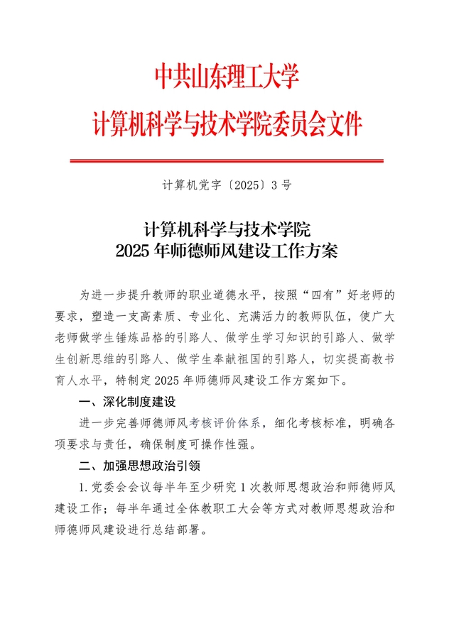 计算机党字【2025】3号-2025年师德师风建设工作方案