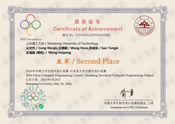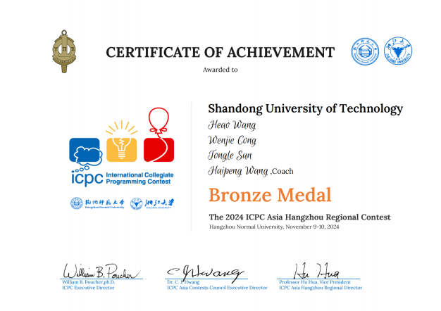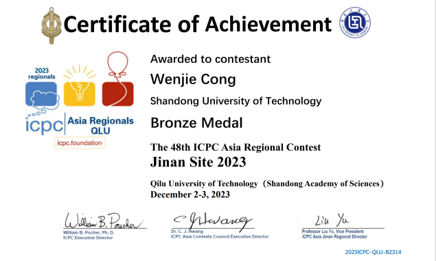 第48届国际老员工程序设计大赛亚洲区域赛(济南站)铜牌
