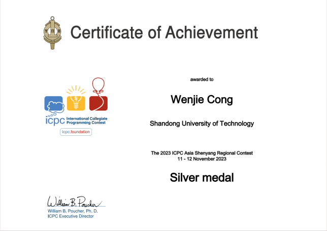 第48届国际老员工程序设计大赛亚洲区域赛(沈阳站)银牌