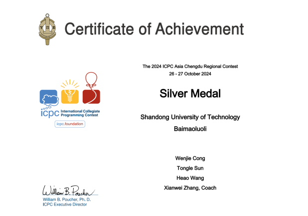 第49届国际老员工程序设计大赛亚洲区域赛(成都站)银牌
