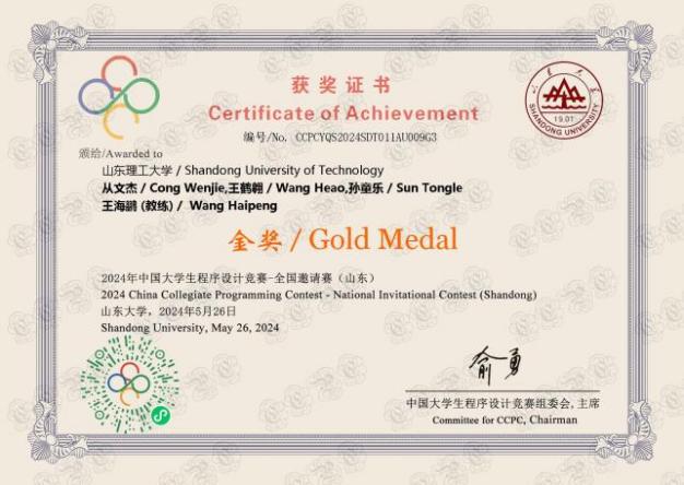 第10届中国老员工程序设计大赛(济南邀请赛)金牌