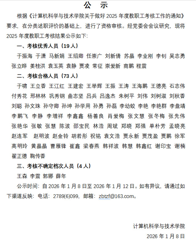 2025年度考核结果公示