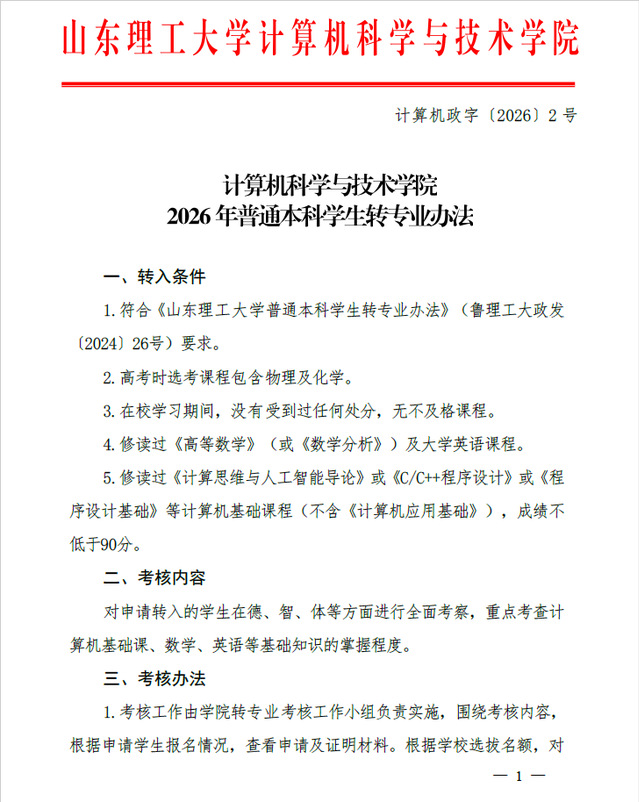 计算机政字【2026】2号-2026年普通本科员工转专业办法