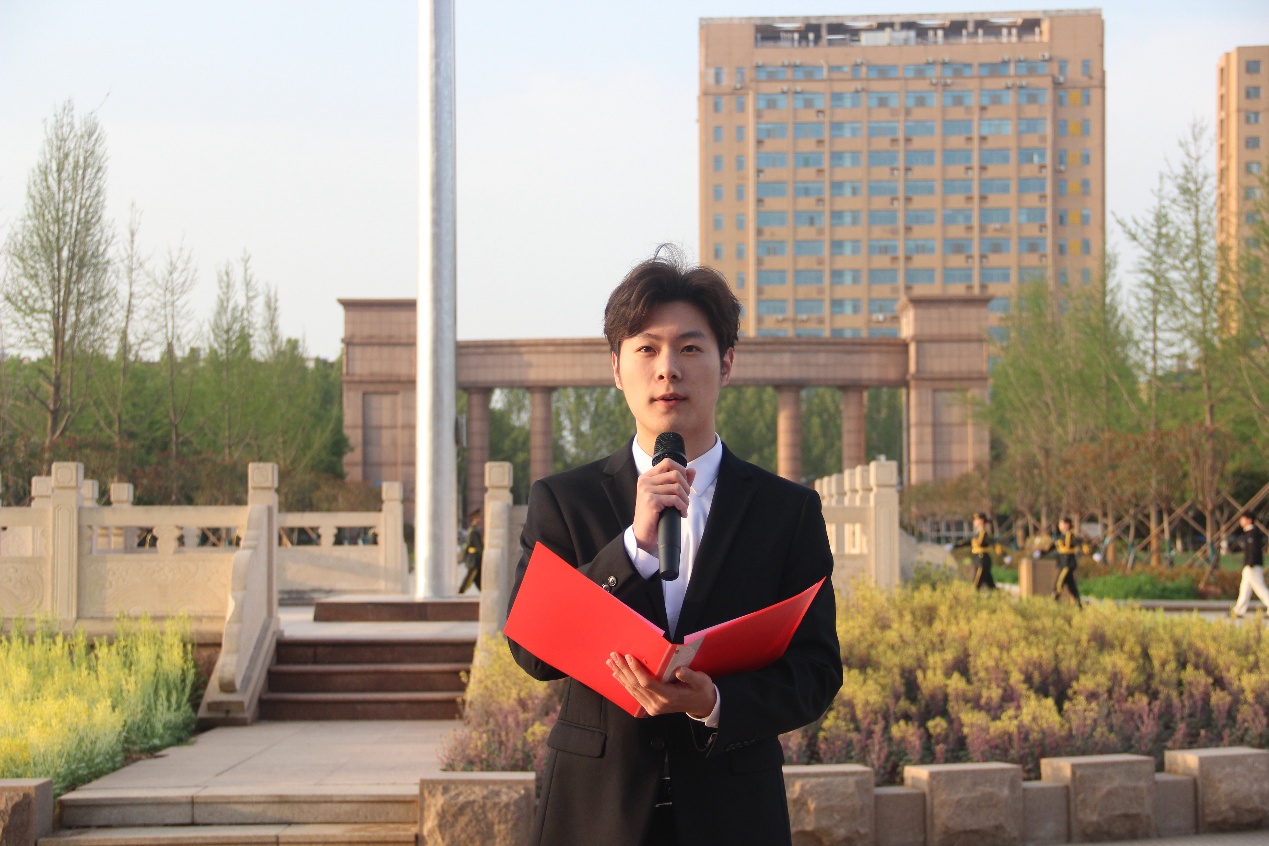 员工代表潘浩雨作国旗下演讲,号召全体同学坚定理想信念,锤炼专业本领,将个人成长融入国家发展与校园建设,以青春之我、奋斗之我,争做有理想、敢担当、能吃苦、肯奋斗的新时代好青年。